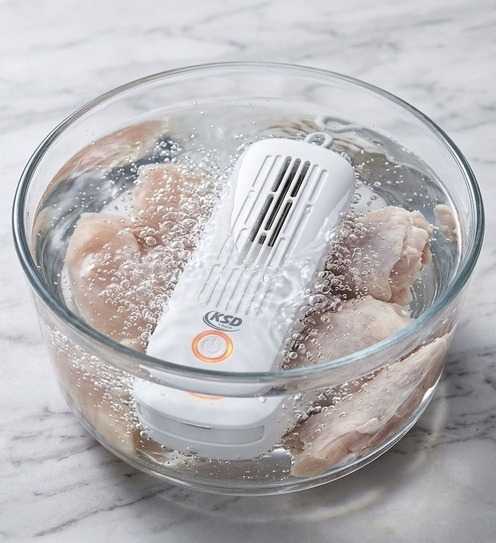 The KSD cleaner is primarily designed for fruits and vegetables. While it can assist with surface cleaning, we recommend following appropriate food safety guidelines when preparing meat and seafood.